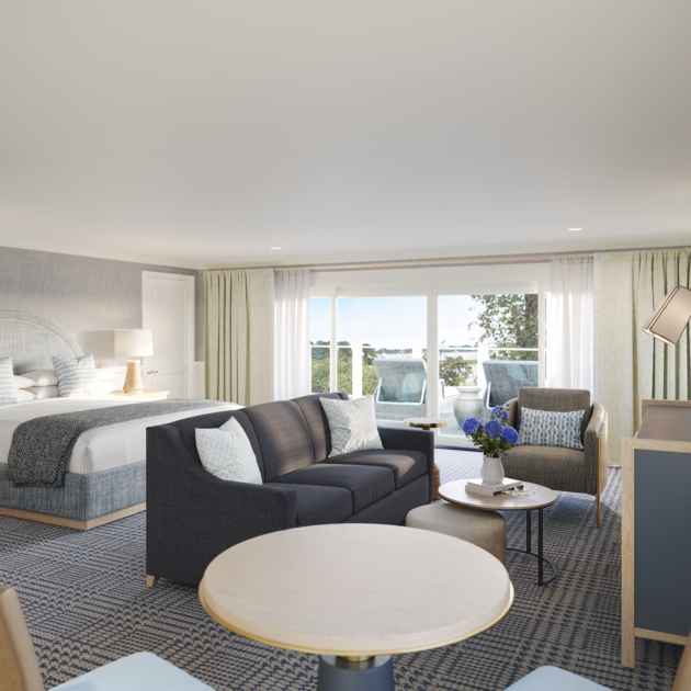 Led by Boston-based design firm Reider & Co., the guestroom renovations are inspired by the natural beauty of Cape Cod, aiming to create spaces that feel casual yet refined and elegant. The design reflects the coastal surroundings, with calming materials such as grasscloth wall coverings, sheer drapery, and linen textures, all contributing to a luxurious and layered look. The color palette incorporates subtle nautical elements, blending seamlessly with the resort’s timeless seaside charm.